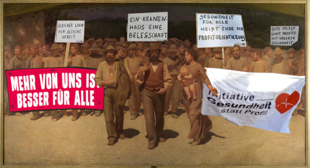 In der Initiative Gesundheit statt Profit haben sich Beschäftigte im Gesundheitswesen und engagierte Menschen zusammengeschlossen, um für ein Gesundheitssystem einzutreten, in dem Pflege, Therapie und Behandlung nicht den Profitinteressen Weniger untergeordnet sind. Wir treten für kostenlose Versorgung ein, fordern die Abschaffung der Fallpauschalen, mehr Personal in der Pflege und die Wiedereingliederung der Service-Gesellschaften.