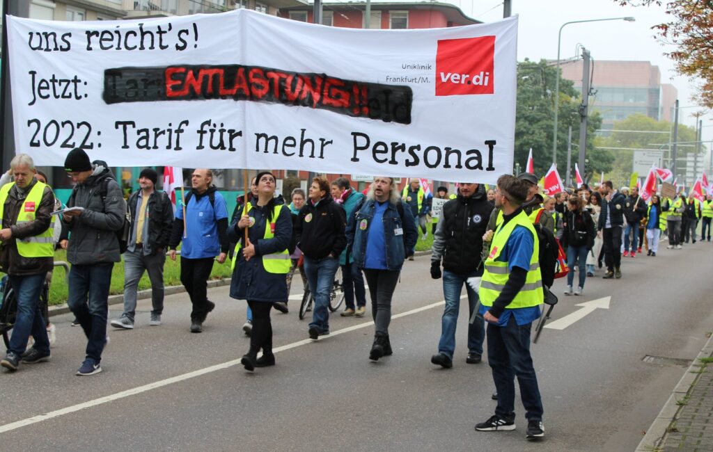 Wochenlang streikten im Sommer Kolleg*innen an sechs Unikliniken in Nordrhein-Westfalen für mehr Personal und für bessere Arbeitsbedingungen. Mit Erfolg! Auch in der Metropolregion fordern seit langem Beschäftigte an Kliniken mit wachsender Dringlichkeit Entlastung. Was können wir aus dem Erfolg der Kolleg*innen lernen?