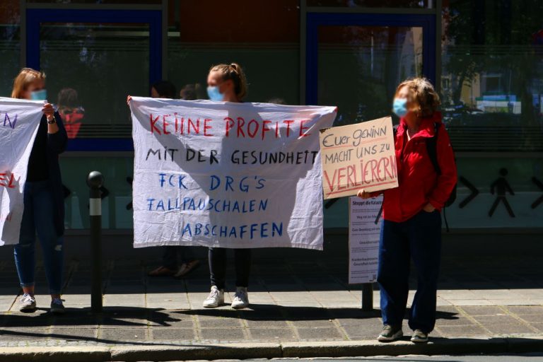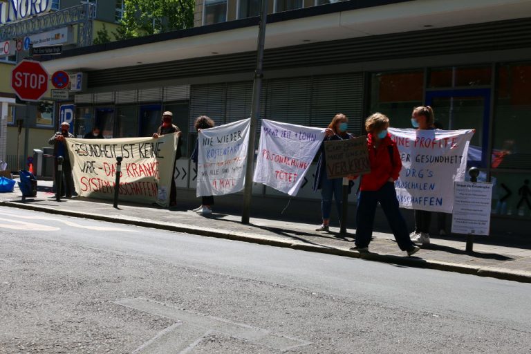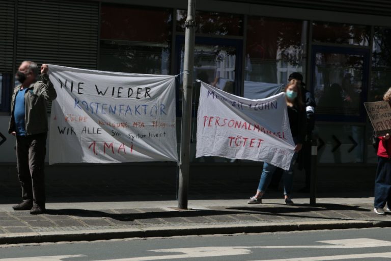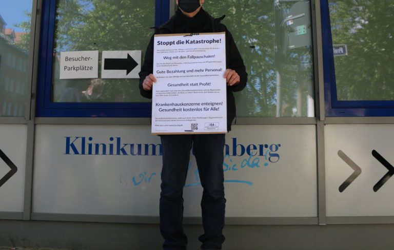 Heute, am 12. Mai 2020 fanden bundesweit zahlreiche Aktionen statt, mit denen ArbeiterInnen im Gesundheitswesen ihrer Forderung nach besserer Bezahlung und besseren Arbeitsbedingungen Nachdruck verliehen. Auch in Nürnberg fand auf Initiative der ISA vor dem Klinikum Nord erneut eine Kundgebung statt. Wie den Plakaten und Transparenten zu entnehmen war, müssen Verbesserungen für die Tätigen in allen Bereichen durchgesetzt werden, z.B. auch für diejenigen, die für Nahrung und Reinigung sorgen. RednerInnen verlangten zudem ein kostenloses Gesundheitssystem und die Enteignung privater Krankenhauskonzerne.
